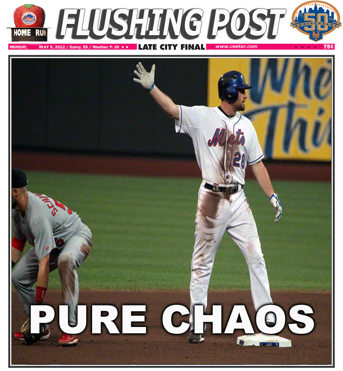 Baseball players don’t have enough cool nicknames. So when Ted Berg suggested, via Ike Davis, that “Pure Chaos” would be a good nickname for Daniel Murphy I decided to run with it. It may not describe his hitting style, but I do think it applies to his general approach to the game. Before you say anything, The Irish Hammer does not count as a nickname.