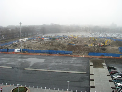 I got there at 11:35, and figured rather than go to LF and go right in, I’d wait at the Rotunda to enter there at 11:40. I’m glad I did. The Rotunda, and the area around it, are terrific. Even the dwindling pile of Shea is beautiful in it’s own way, and people were indeed taking pictures with it. I crossed into the building, and the Rotunda is amazing. Still plenty to be done, but still amazing. I was confronting with the urge to be 18 places at once and running all over. Seeing as that was impossible, we started with probably the most mundane, the team store.